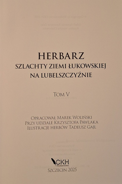 Tom V liczy również 438 stron i poprzedzony jest wstępem o ubożeniu szlachty. Zamieszczone są też wizerunki herbów z tomów III-V, (których brak w tomie II), autorstwa Tadeusza Gajla.